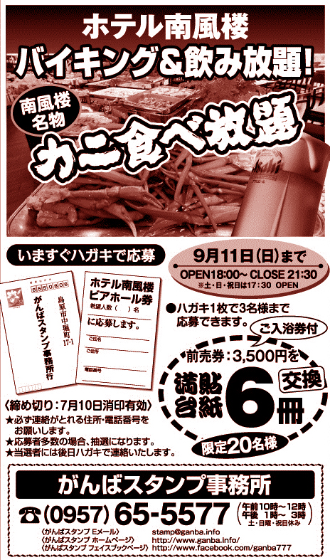 | がんばスタンプ:7/1折込チラシ http://www.ganba.info/ https://www.facebook.com/ganba777 |