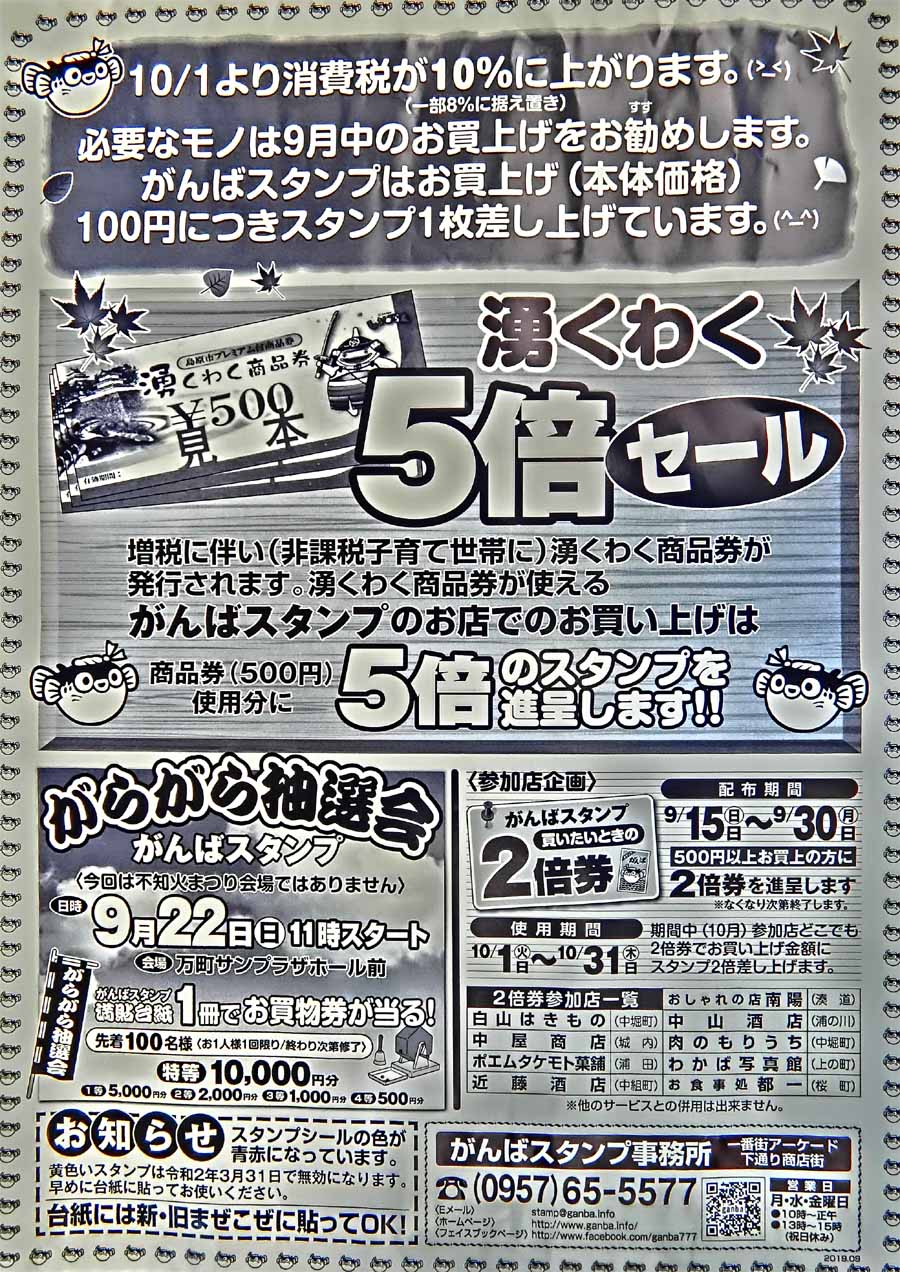 | 湧くわく商品券(500円券)は、5倍のスタンプ進呈! | |