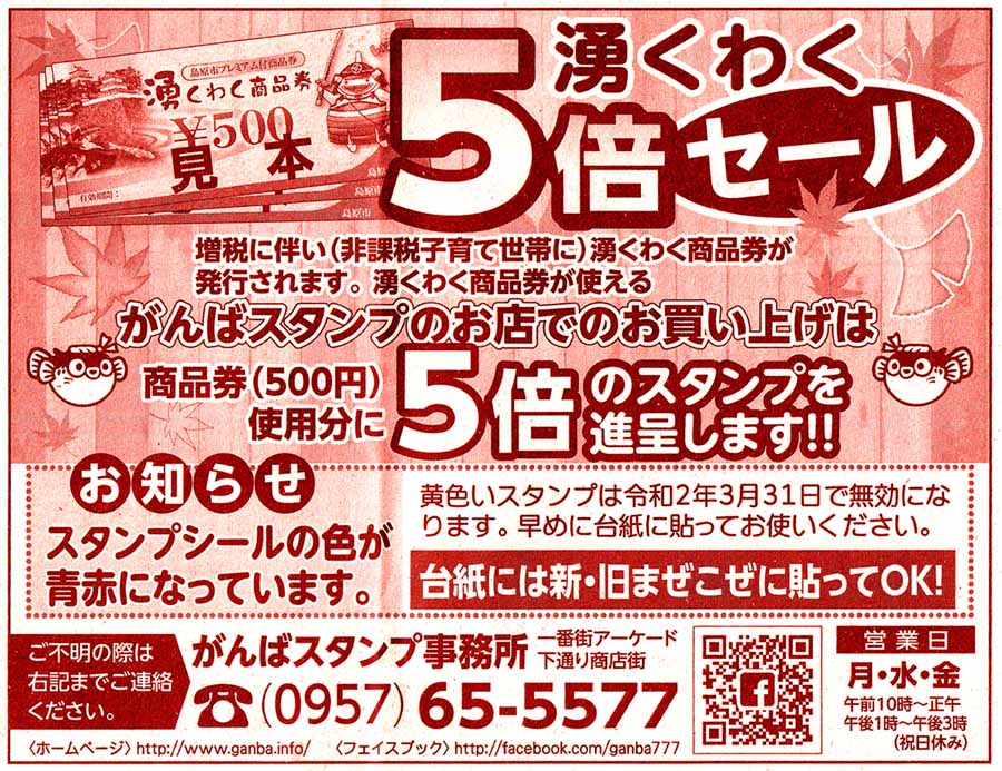 | 湧くわく商品券(500円券)は、5倍のスタンプ進呈! | |
