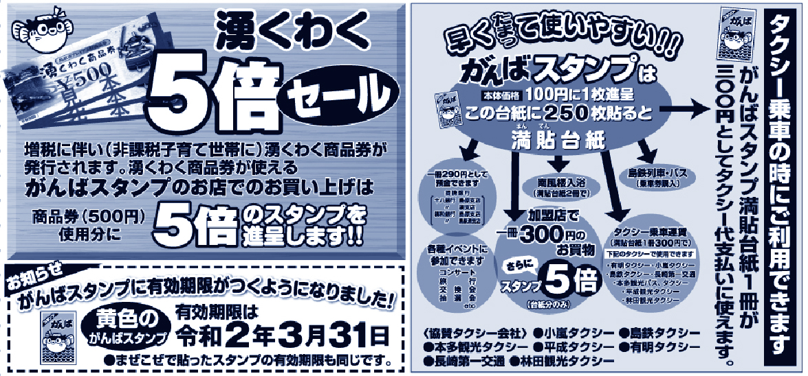 | 湧くわく商品券(500円券)は、5倍のスタンプ進呈! | |