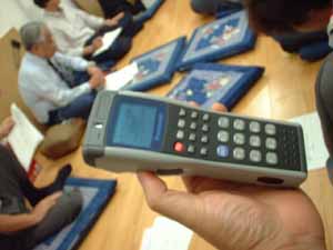 | NCRの川下さんがシステムを説明 | これがハンディ装置 |