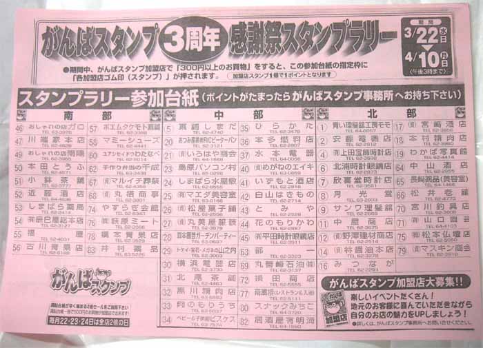がんばスタンプ事務所にありますので、足りないお店は取りに来てください。