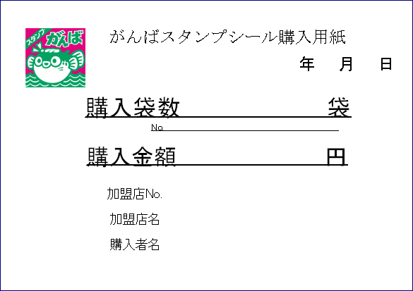 | 加盟店が、事務所でスタンプシールを購入する時の用紙 改定:購入袋数の下に「No. 」を追加 改定:購入者の「印」を削除 |