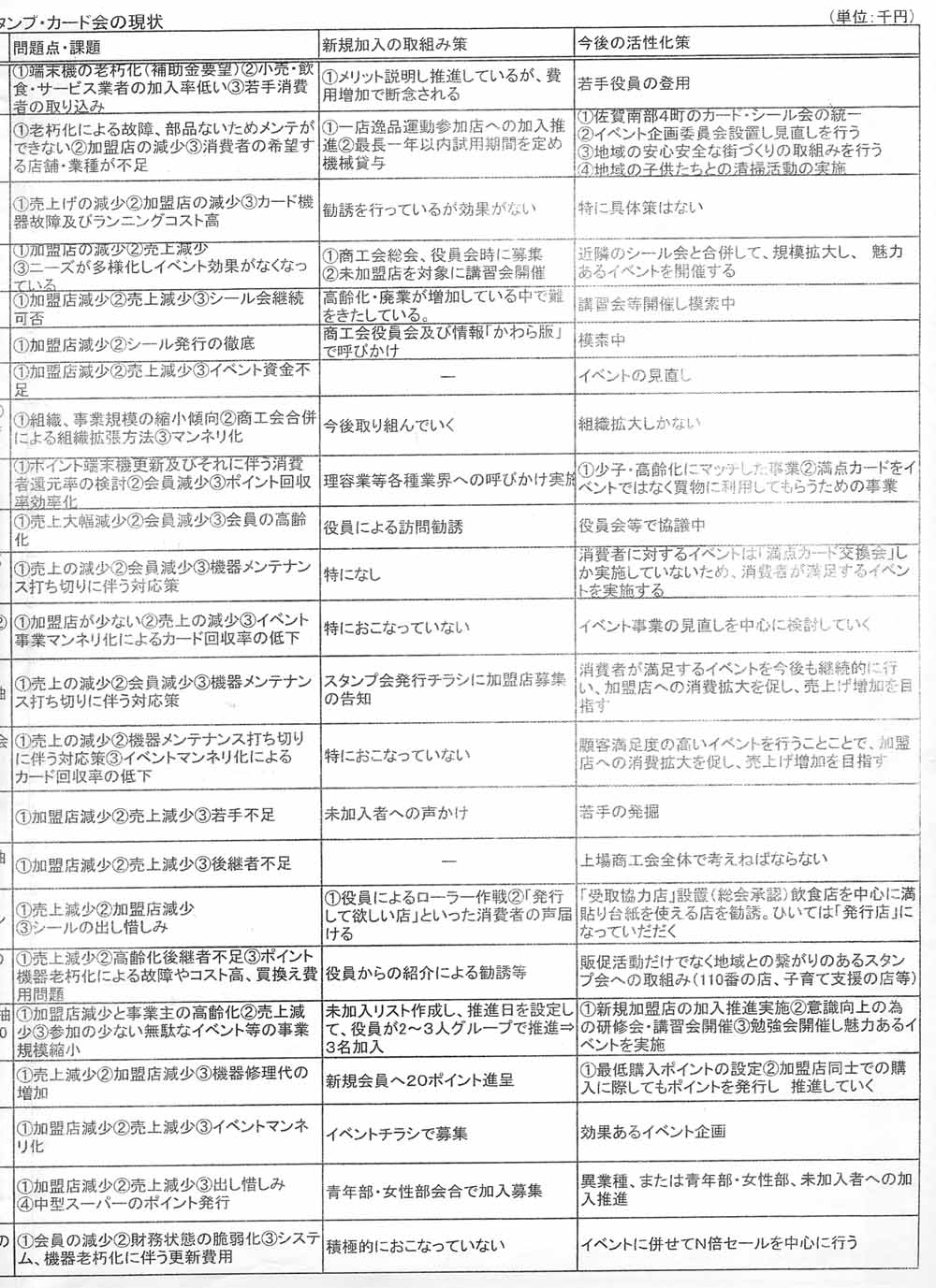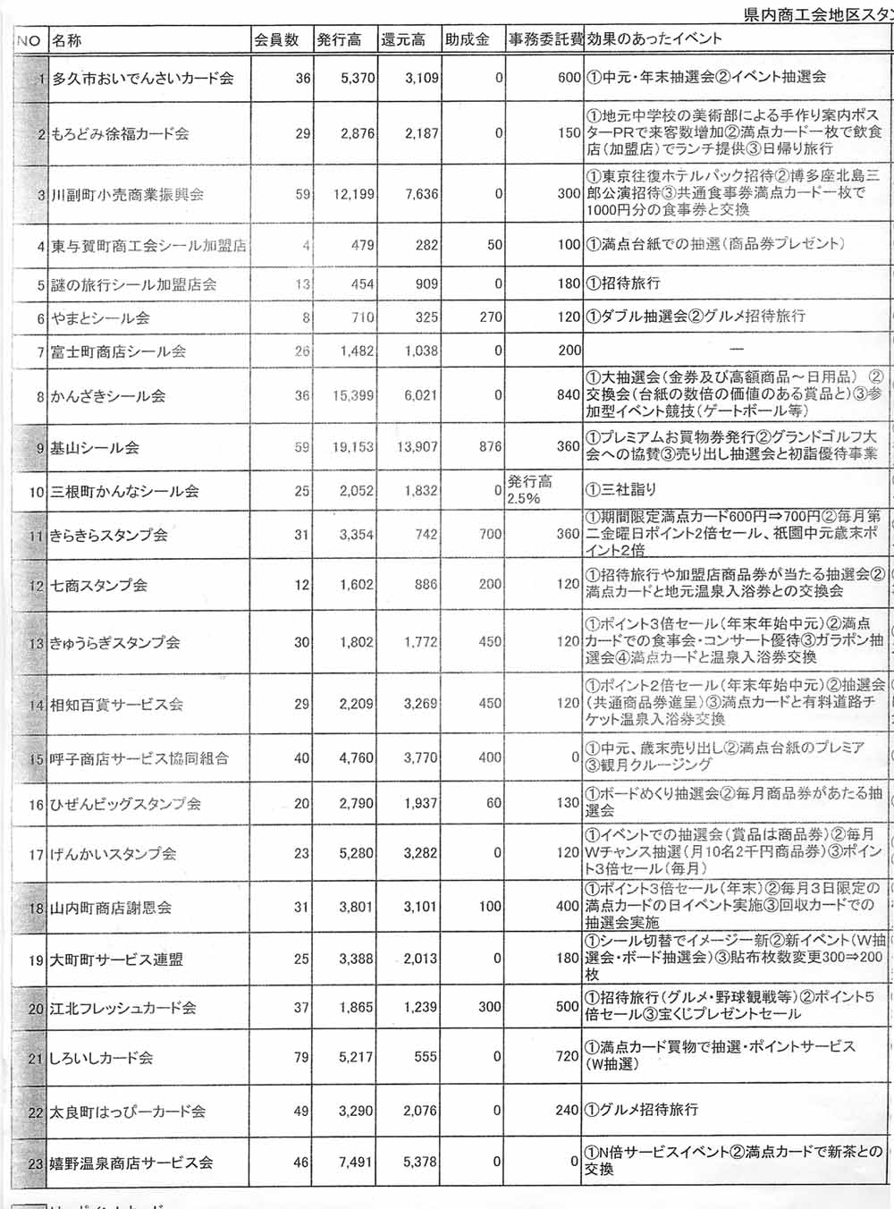 佐賀県内商工会地区:スタンプカード会データ