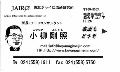 | 講師:小柳 剛照 氏 *こやなぎ名人 (東北ジャイロ流通研究所・福島市) http://www.koyanagimeijin.com/ http://jairo.co.jp/profile/m-kou/s-koyanagi.html |