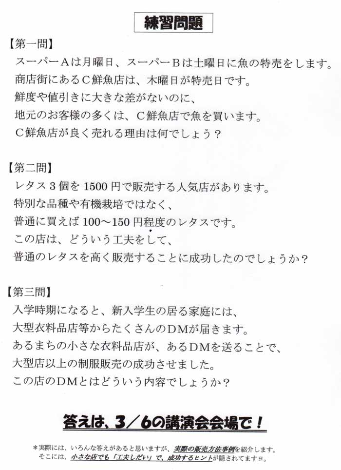 | 20080122 佐賀県商工会連合会「経営セミナー」 こやなぎ名人(福島) ![]() ↑クリックどうぞ↑ |