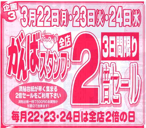 加盟店全店:スタンプ2倍セール![]() |