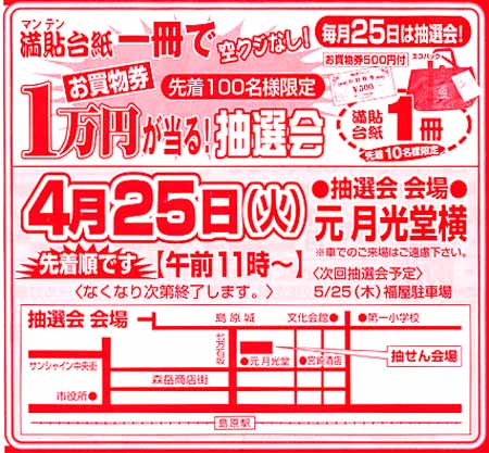 | 「福引抽選会」 (先着100名) 満貼台紙1冊(1人1冊1回) |