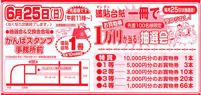 | 6月25日(日)午前11時〜 中部:がんばスタンプ事務所前 |
