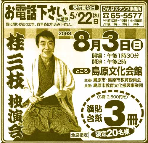 | お電話ください! がんばスタンプ事務所 0957−65−5577 (午前10時〜12時 午後1時〜3時 日曜休) *数に限りがありますので、無くなり次第、締め切ります。 |