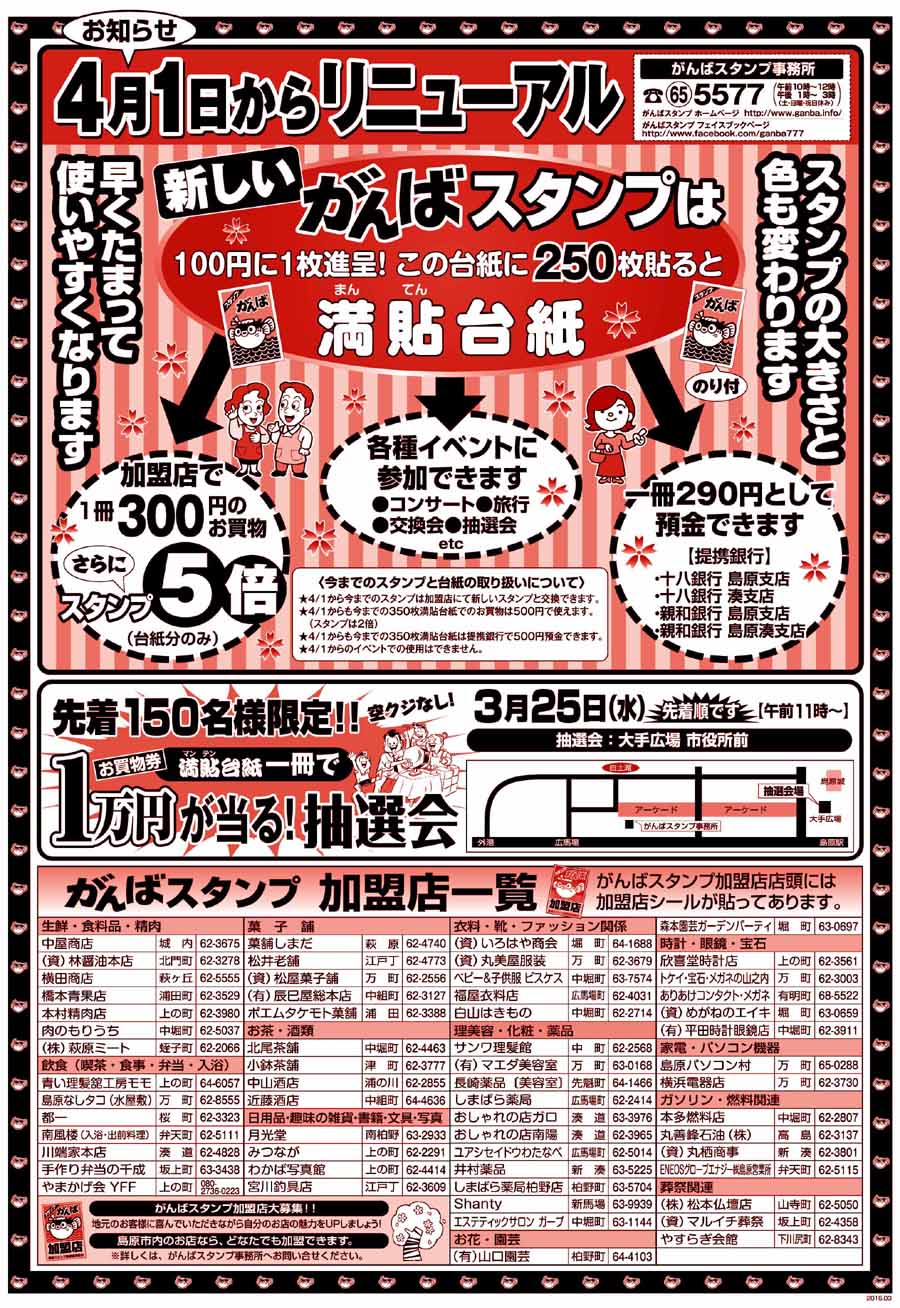 | がんばスタンプ:3/22折込チラシ http://www.ganba.info/ https://www.facebook.com/ganba777 |