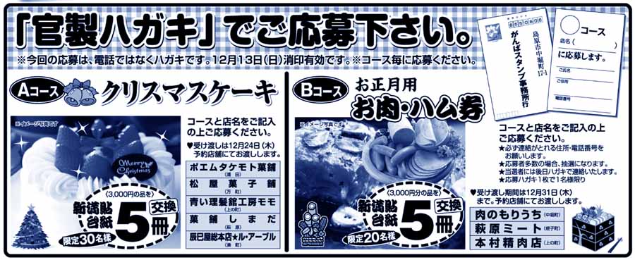 | ハガキで応募下さい!(12/13消印まで有効) | |